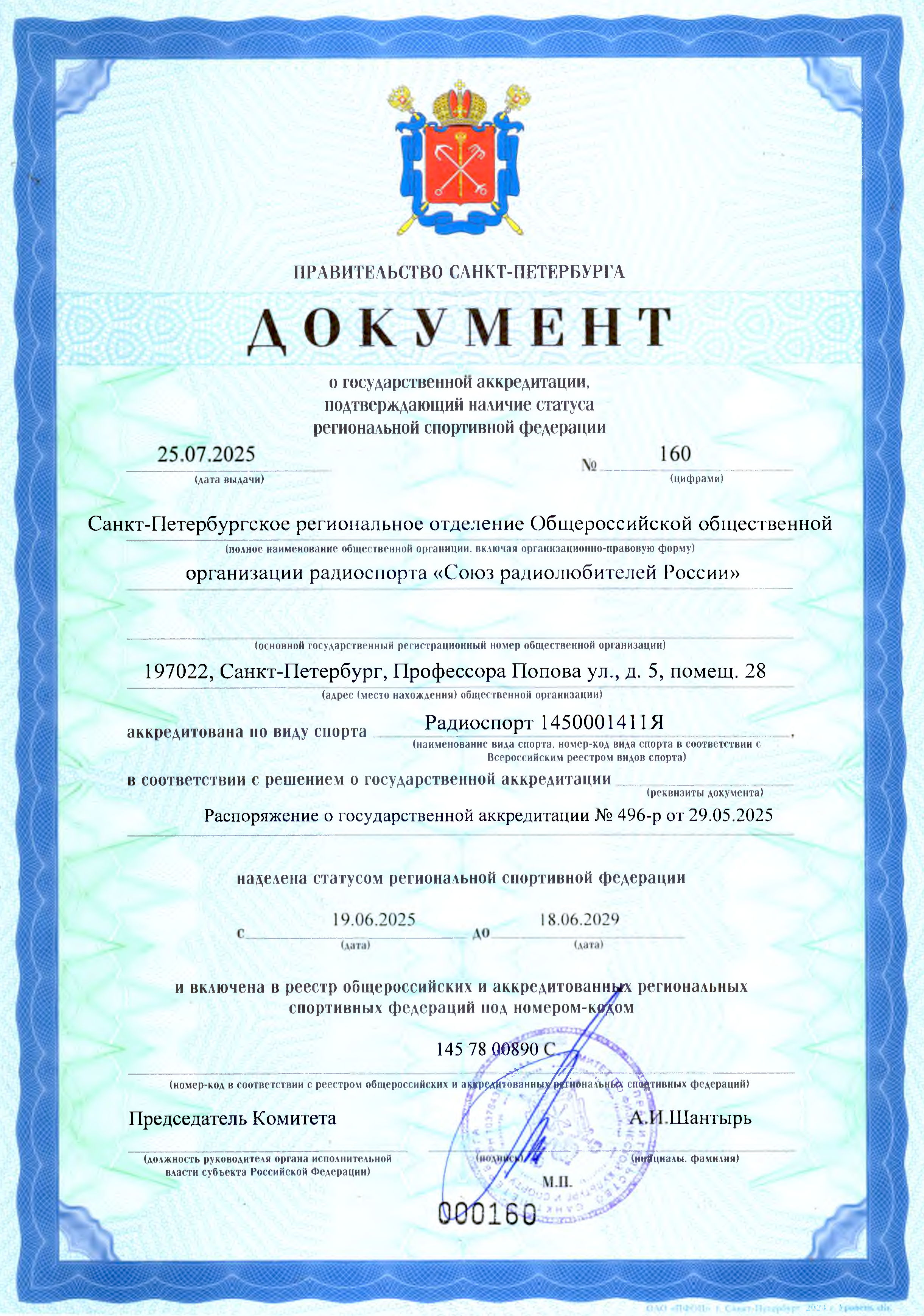 Документы о государственной аккредитации, подтверждающие наличие статуса региональных спортивных федераций